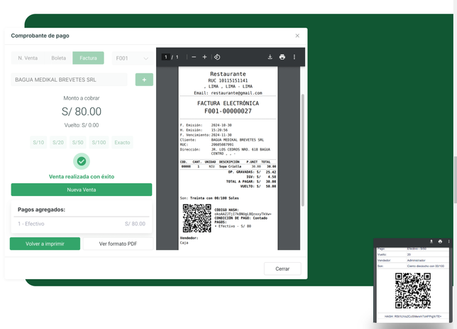 - Genere sus pedidos y comprobantes rápidamente. No necesita internet para imprimir sus notas de ventas: